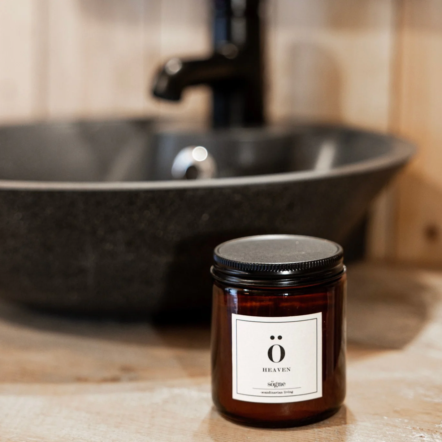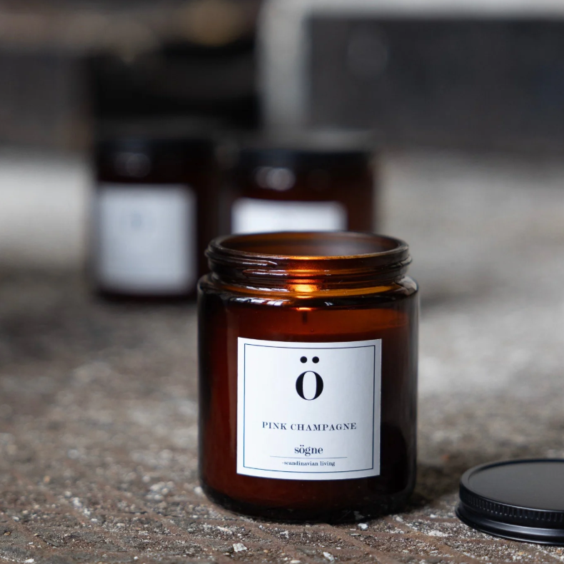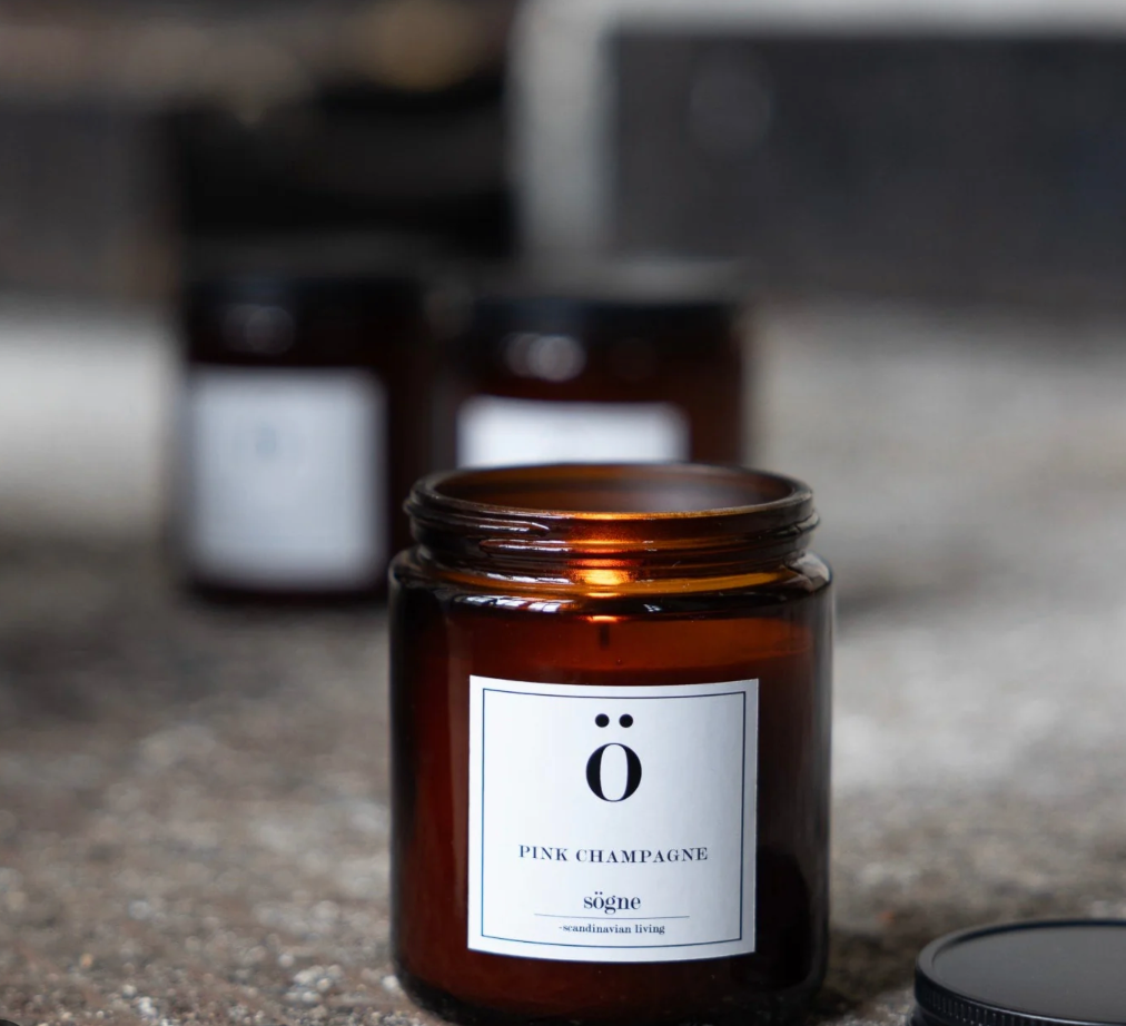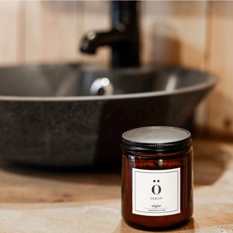 STÍLHREIN ILMKERTI Í BRÚNUM GLERKLUKKUM. GEFA FÁ SÉR NOTALEGA BIRTU OG GÓÐAN ILM.