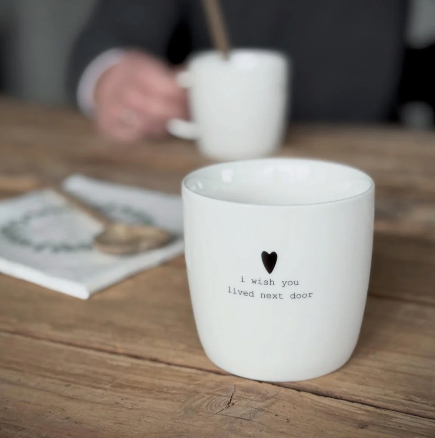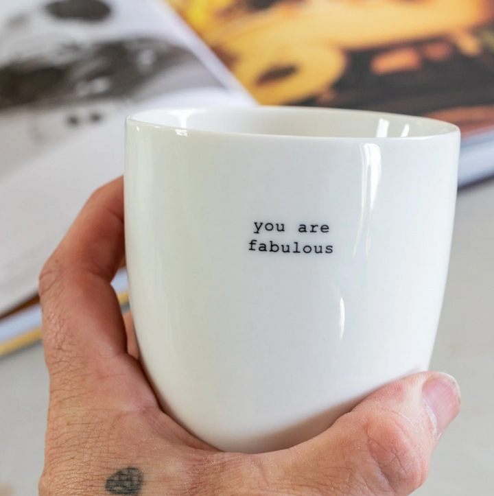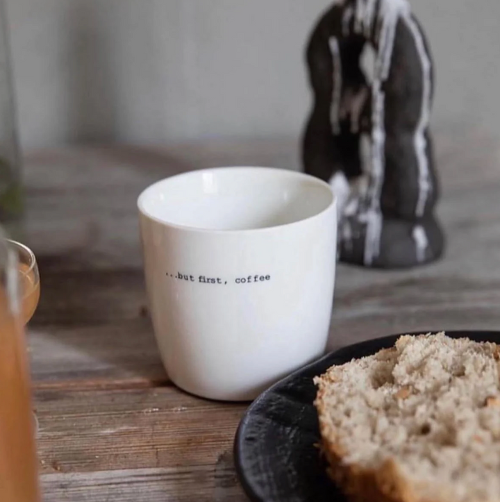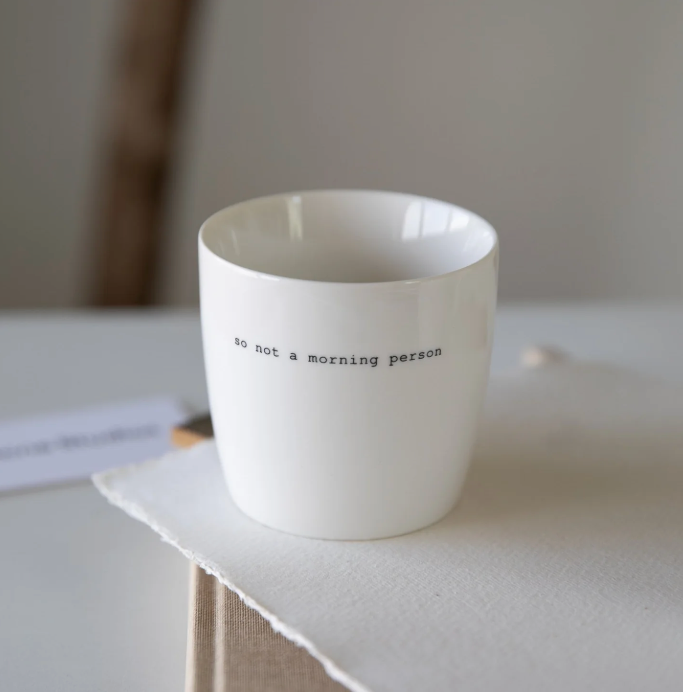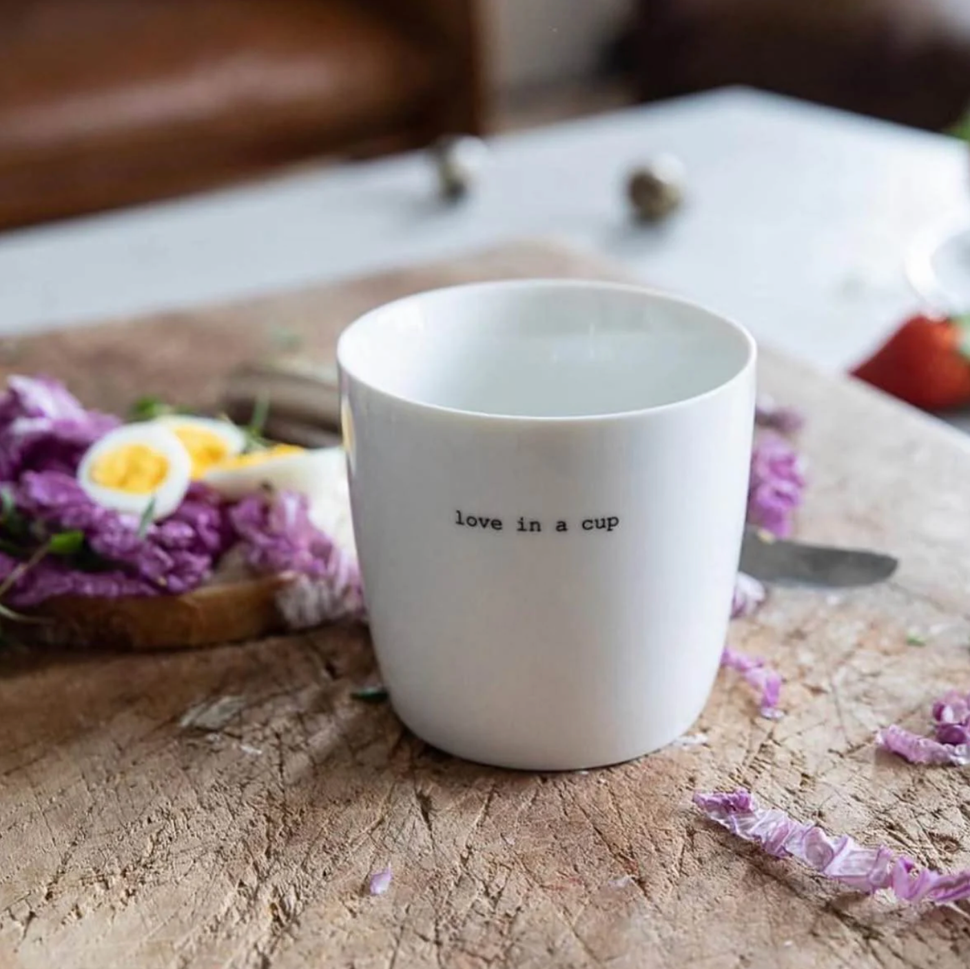 HANDGERÐU KAFFIBOLLARNIR FRÁ SÖGNE ERU ÚR ÞUNNU POSTULÍNI OG MEÐ ÞÆGILEGU HANDFANGI. DÁSAMLEGIR BOLLAR MEÐ SKILABOÐUM SEM GERA DAGINN SKEMMTILEGRI!