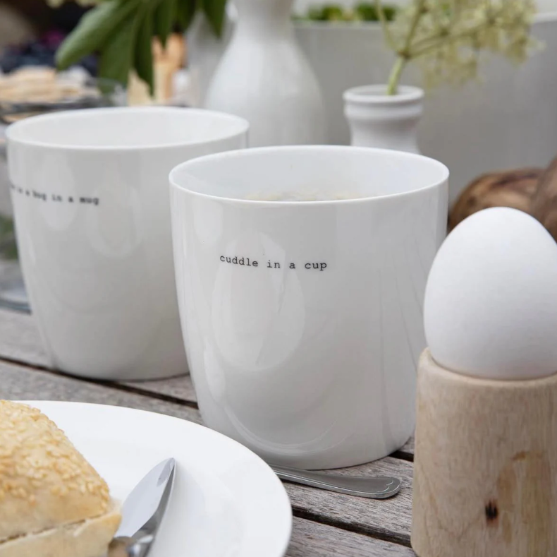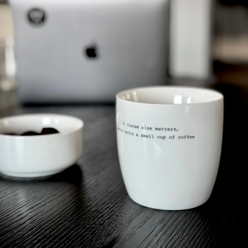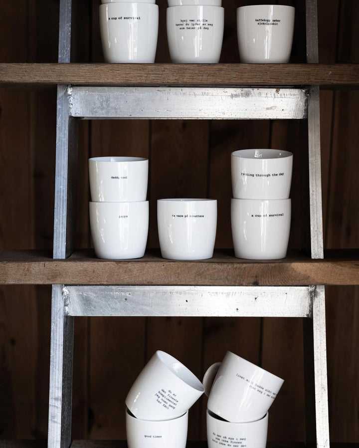 Könnurnar eru úr þunnu postulíni og með þægilegu handfangi. Dásamlegar könnur með skilaboðum sem gera daginn skemmtilegri.