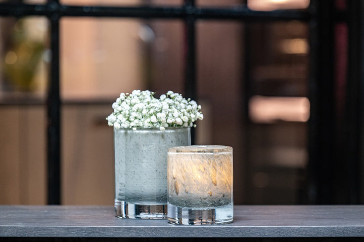 CYLINDER BUBBLES 2.0 - Kertaglös er hægt að nota bæði fyrir blóm og kerti. Loftbólurnar í glerinu gefa frá sér fallega og notalega birtu.