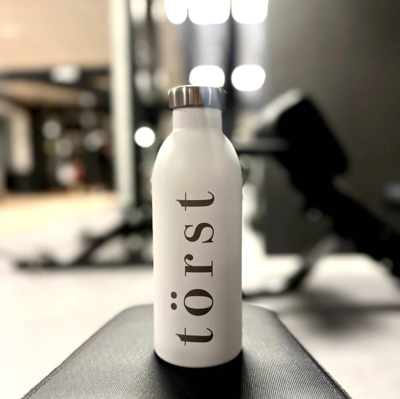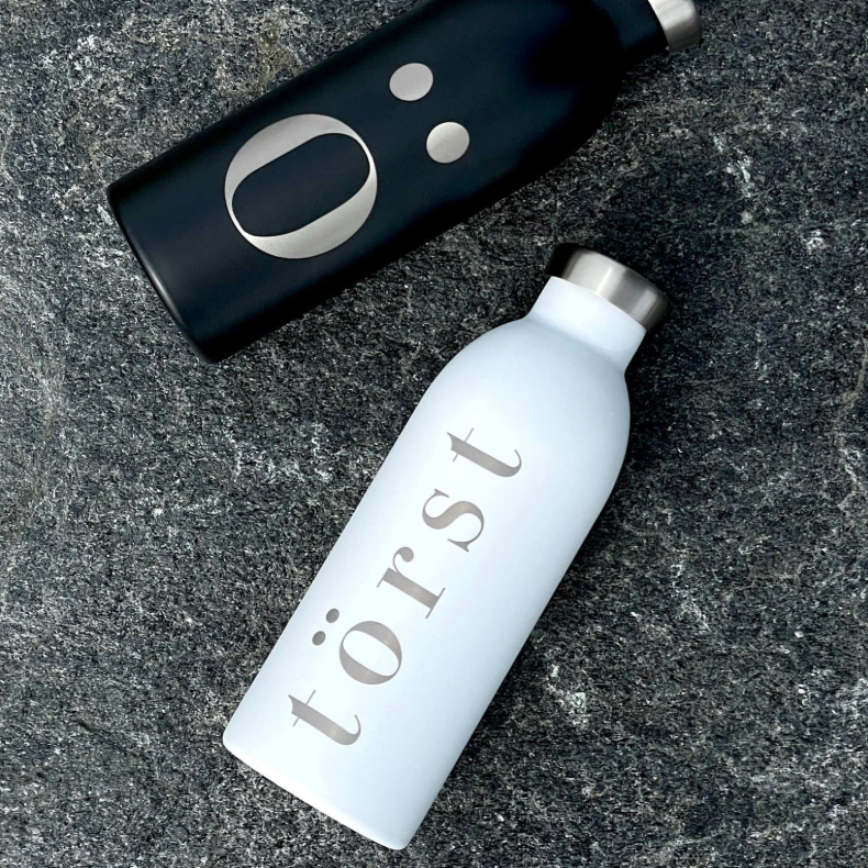 FALLEG DRYKKJARFLASKA FRÁ SÖGNE ÚR STÁLI MEÐ SKRÚFTAPPA.